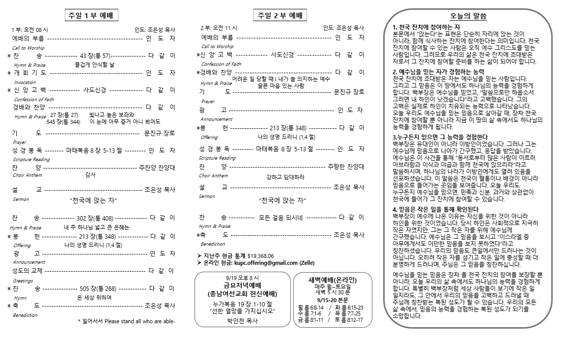 2025년 9월 14일 주보