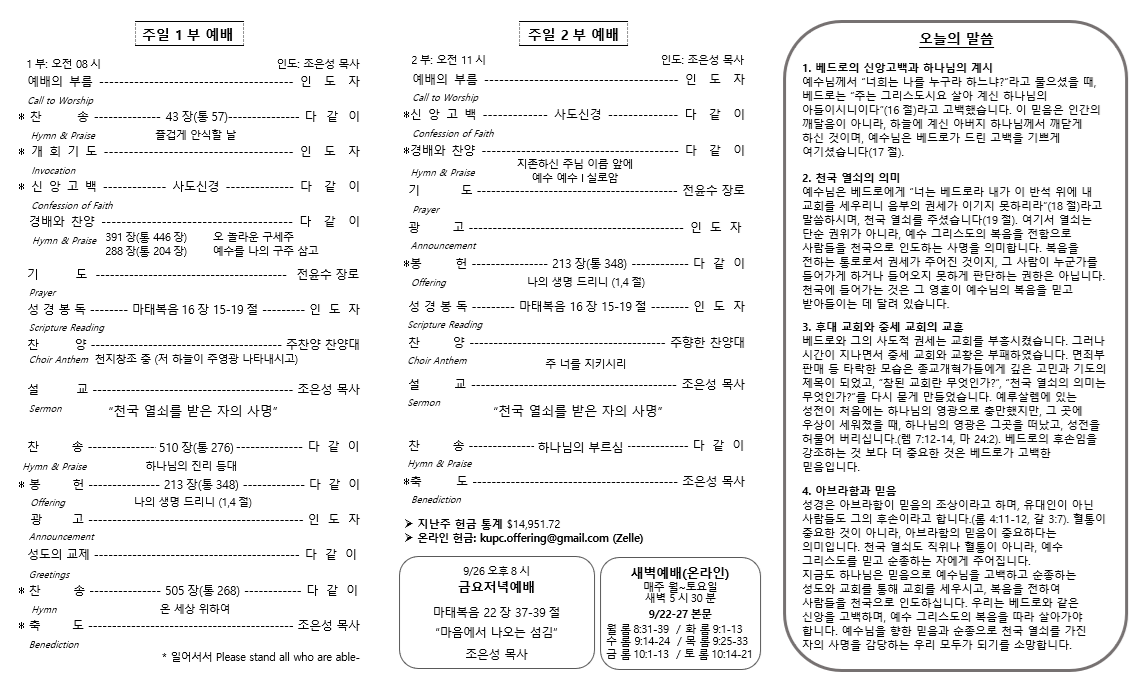 2025년 9월 14일 주보