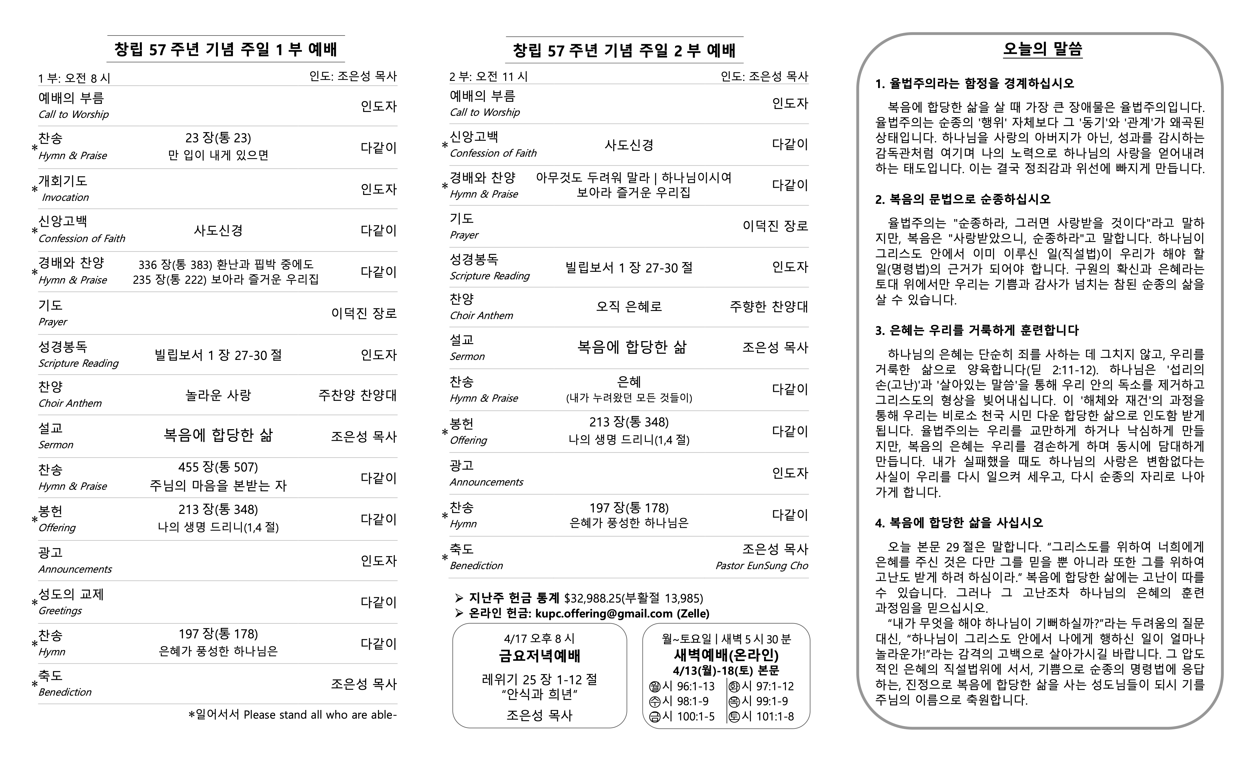 주일예배 주보